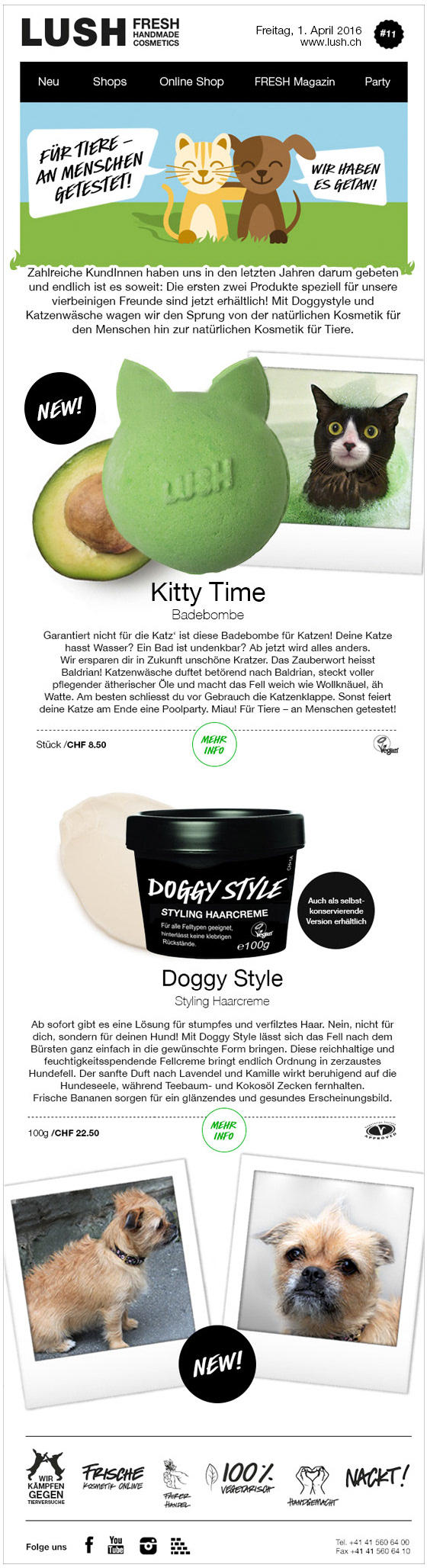 Selection as one of the best April Fool's 2016 newsletter in a Swiss German newspaper.
