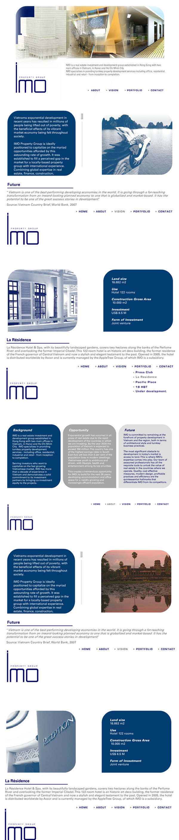 Website for IMO Property Group, a real-estate development and investment company.